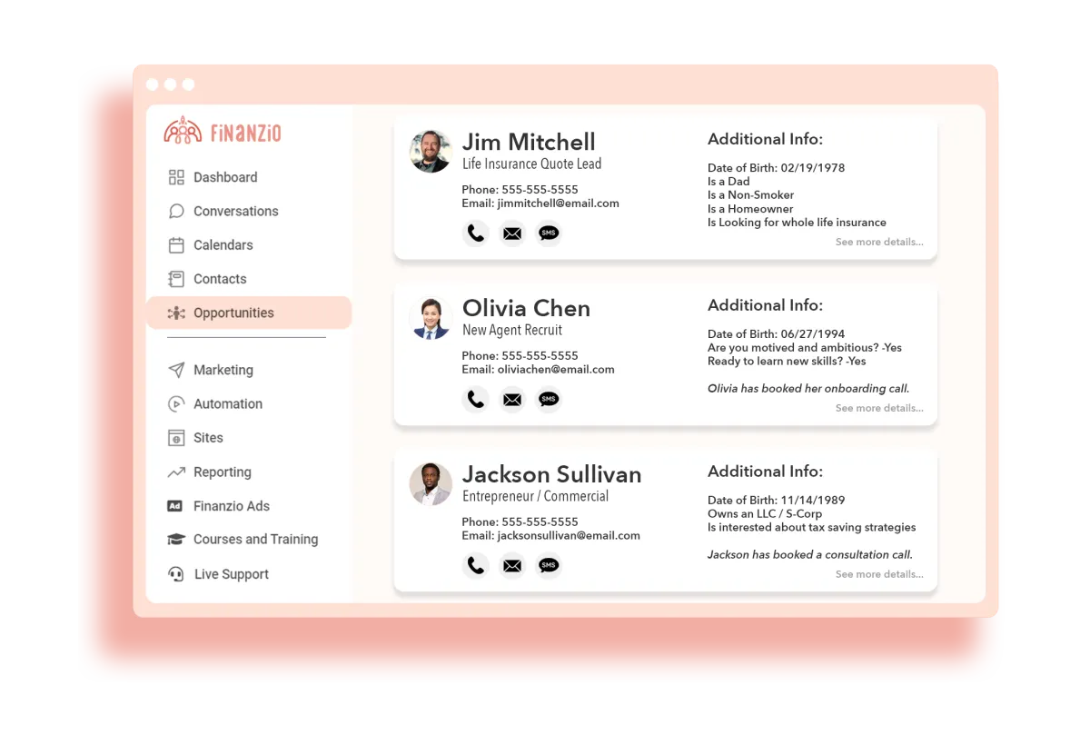 Finanzio specializes in lead generation for insurance agents and other financial professionals. Our mission is to facilitate your business growth by providing you with a continuous flow of highly qualified potential clients.